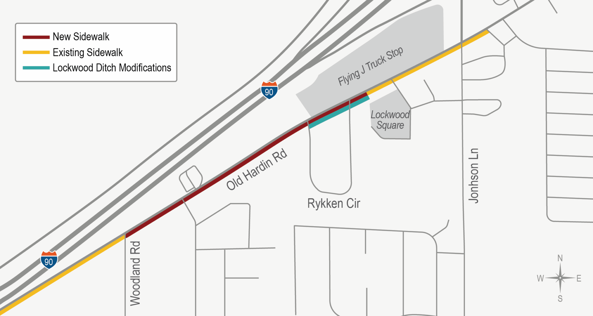 • A new, 6-foot boulevard sidewalk on the south side of Old Hardin Road between Woodland Road and the existing sidewalk near Lockwood Square, just east of Rykken Circle.